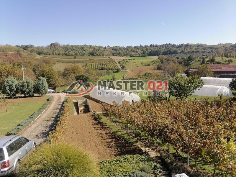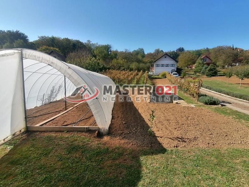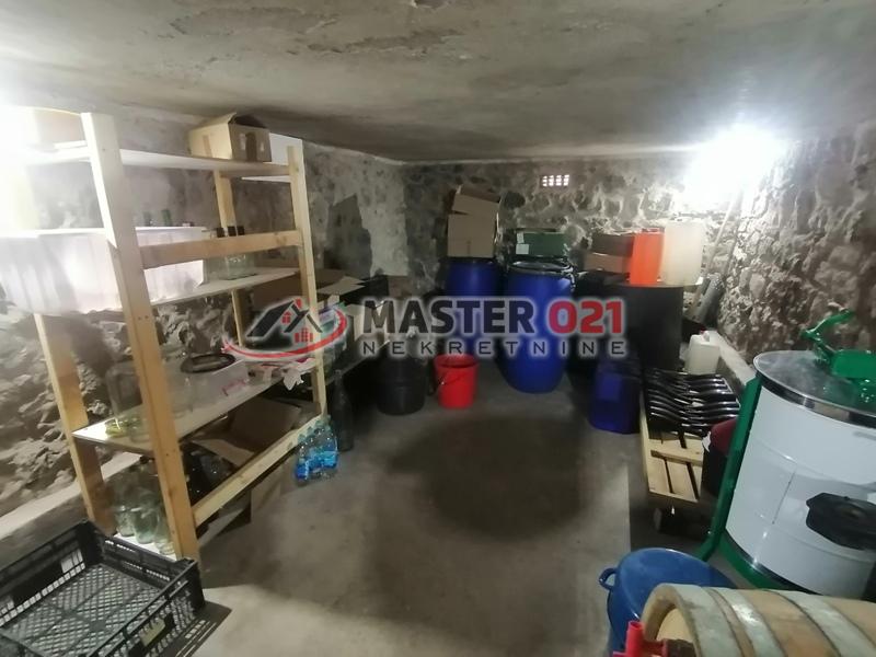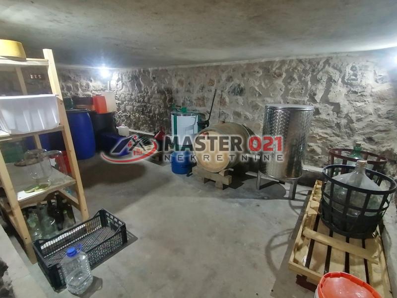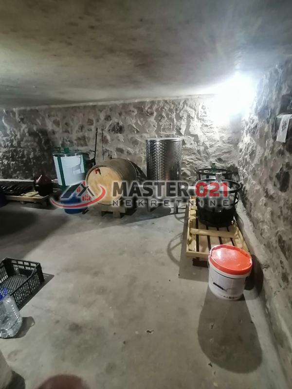 Prodaje se uknjižena kuća, u osnovi 62m2 + sprat, na velikoj parceli 4.350m2. Kuća je potpuno završena I bez ulaganja. Prva etaža:velika prostorija sa vinskim podrumom i toaletom. Sprat: hodnik, kuhinja sa većim dnevnim boravkom, kupatilo i veća soba. Plac se nalazi na odličnom mestu , Sremska Kamenica - Staro selo. Front placa uz put 121m. Gradska voda, trofazna struja, septička. Čitav plac je sređen, ograđen, sa vinogradom, zasadom aronije, plastenikom 75m2, sve zalivanje kap po kap. Ima bunar kapaciteta 2000L. dnevno. Izuzetan plac, blago strm sa lepim pogledom na Frušku goru. Zemljište u građevinskom području, vinograd 2 klasa.